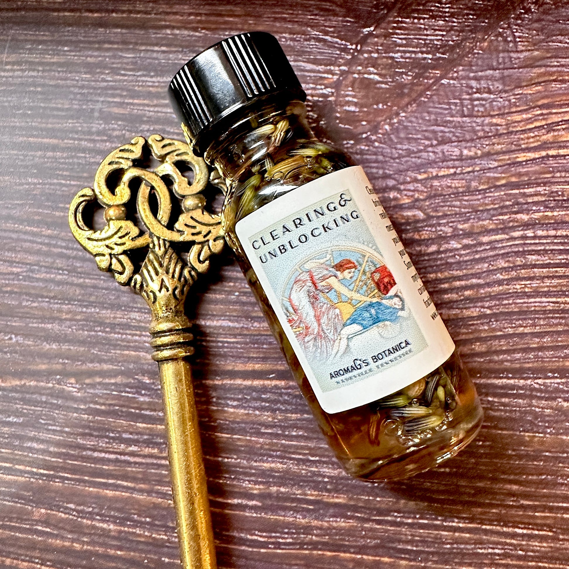 Clearing and Unblocking oil to help clients bring out the best version of the person they really are. Meant to clear out and unblock old messages from the past – things that hold you back. For example, perhaps an excellent singer has never, and will not sing in public because they were told as a child, “you can’t sing.” This is what clearing and unblocking oil goes after — those nasty little voices in your head that say, “you can’t do it.”