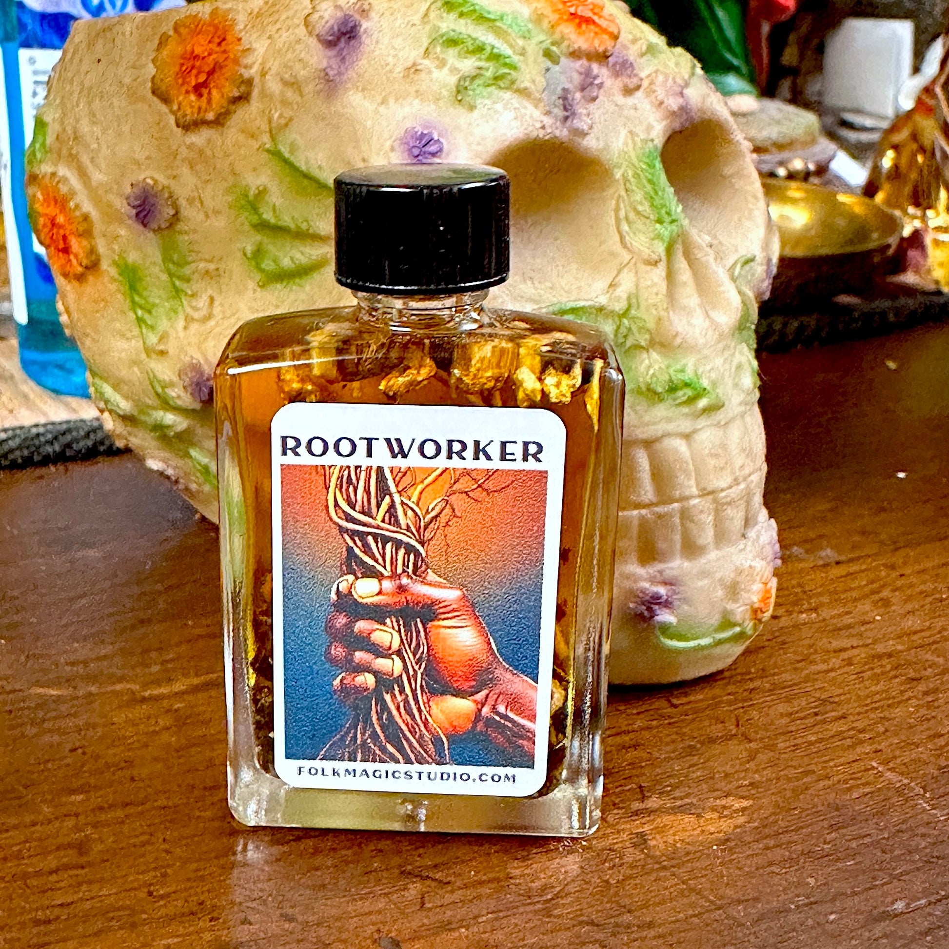 Rootworker oil is a remarkable all-purpose formula that aligns itself with your specific intentions. Its unique blend includes elements of love, hate, money, lust, forgiveness, revenge, power, and other emotions, making it adaptable to virtually any need. The secret to its effectiveness lies in its ability to be directed by your intentions—you tell it what to do, and it follows your command. Perfect for when have run out of a specific oil because the Rootworker blend can replace it when you’re in a pinch. Some refer to this type of oils as a “rootworker’s special” oil.